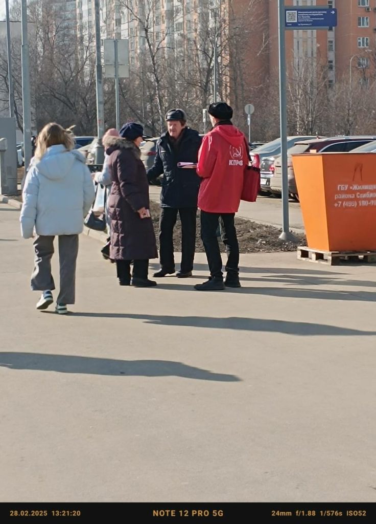 С момента официального объявления 14 февраля 2025 года Московским городским комитетом КПРФ акции «Народный референдум» столичные райкомы партии активно проводят опрос жителей мегаполиса по вынесенным на голосование вопросам: о введении государственного регулирования цен на товары первой необходимости, о национализации ЖКХ, о принятии закона о государственной социальной поддержки Детей войны, об отмене «пенсионной реформы», о принятии ключевых решений в Москве на основании мнения большинства. Публикуем фоторепортаж участия активистов местных партийных отделений КПРФ г. Москвы в Народном референдуме.
