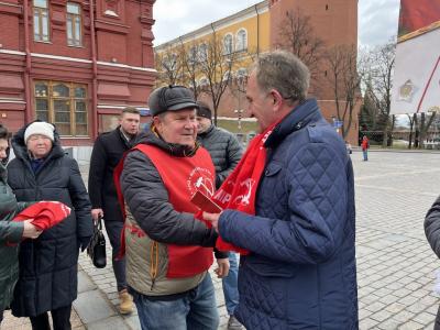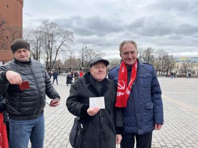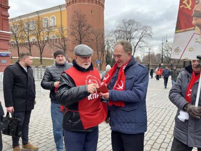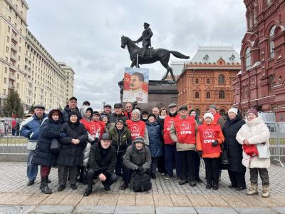 Вначале мероприятия коммунисты возложили цветы к Могиле И.В. Сталина и к Мавзолею В.И. Ленина на Красной площади Москвы.