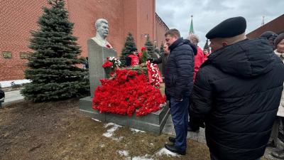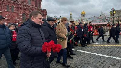 Владислав Егоров, депутат Госдумы РФ и первый секретарь Комитета НРО КПРФ, вместе с руководством Центрального Комитета КПРФ возложили цветы к месту захоронения И.В. Сталина на Красной площади.