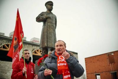 Коммунисты Нижегородской области почтили память И.В. Сталина, возложив цветы к его памятнику, расположенному перед строящимся «Сталин-Центром» в г. Бор.