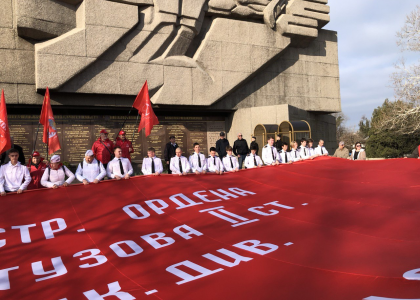 Церемонию старта марша-эстафеты «Наша Великая Победа» Севастопольская городская организация КПРФ начала с возложения цветов к Вечному огню мемориала героической обороны Севастополя 1941-1942 гг. Затем участники мероприятия – коммунисты, комсомольцы, представители севастопольских общественных, молодежных, ветеранских организаций развернули огромную копию Знамени Победы в символическом и священном для севастопольцев месте – возле Вечного огня мемориала героической обороны Севастополя 1941-1942 годов. Копию символа Победы в Великой Отечественной войне размером в 200 кв.м. передали участникам марша-эстафеты, которые развернут его более чем в 100 городах России, на освобожденных территориях, в республике Беларусь.