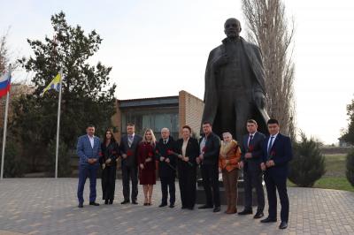 В заключении рабочего визита депутаты-коммунисты Волгоградской области, участники круглого стола возложили алые гвоздики к памятнику В.И. Ленина в центре города Ленинска.