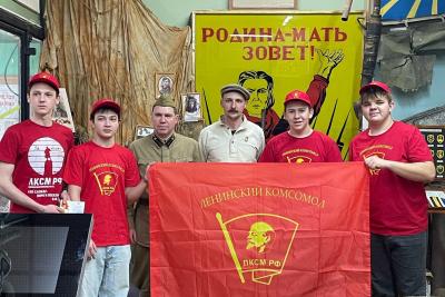 В конце экскурсии Илья Ахремин передал музею памятную медаль ЦК КПРФ «80 лет Великой Победы». Награду тут же прикрепили к знамени на стенде музея.