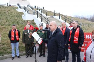 На торжественном митинге у монумента «Соединение фронтов» поселка Пятиморск Калачевского района собрались не только коммунисты Ростовской и Волгоградской областей, но и ветераны, бойцы специальной военной операции, юнармейцы, представители волонтерских движений, учащиеся местных школ.