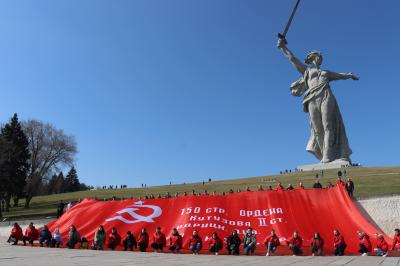 В воскресенье, 23 марта, Антифашистский патриотический марш-эстафета «Наша Великая Победа» состоялся в городе-герое Сталинграде, на Главной Высоте России — Мамаевом кургане.