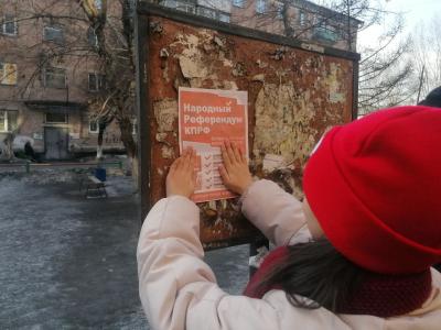 Акция «Народный референдум КПРФ» активно продолжается в Республике Тыва. В ходе компании осуществляется сбор подписей, распространяется информационный бюллетень «Республика», а также проводится наглядная агитация во дворах Кызыла. На сегодняшний день уже собрано порядка трех тысяч подписей в поддержку инициатив КПРФ. Ключевые вопросы, такие как ограничение роста цен, национализация ЖКХ, отмена пенсионной реформы, принятие закона о «Детях войны» и прямые выборы мэра Кызыла, волнуют каждого из нас, и именно поэтому мы затрагиваем эти важные темы.