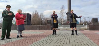 По завершении митинга участники так же развернули копию Знамени Победы и возложили цветы к подножию стелы Город воинской славы.