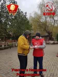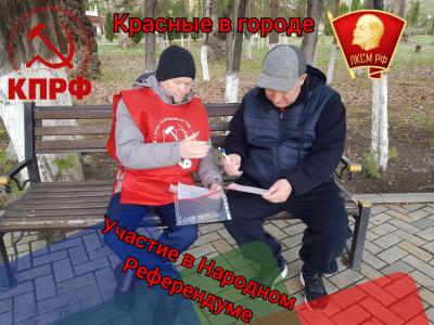 Активисты Карачаево-Черкесского регионального отделения комсомола провели в Черкесске акцию "Красные в городе" и продолжили проведение Народного Референдума КПРФ, проведя опрос граждан по пяти важным пунктам которые важны для каждого гражданина России.