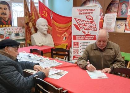 Подмосковные коммунисты ведут активную работу с жителями, большинство которых поддерживает Народный референдум от КПРФ. Граждане активно отвечают на вопросы, разбирают партийную прессу.
