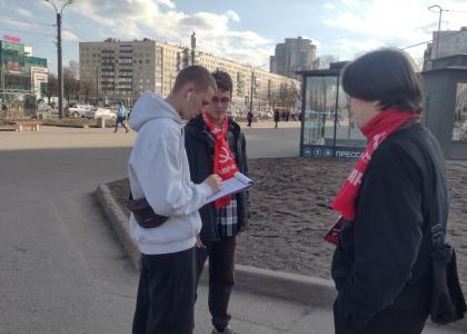 Члены и сторонники КПРФ продолжают Народный референдум в городе на Неве. Из-за позиции властей и специфики написанного единороссами законодательства провести полноценный референдум на государственном уровне сейчас практически невозможно, но никто не может запретить людям высказывать свое мнение по наболевшим вопросам.