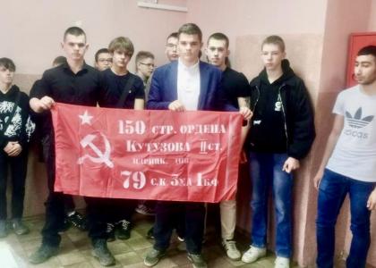 По окончании мероприятия студенты колледжа вместе в коммунистами своими руками с помощью трафарета и краски изготовили копии Знамени Победы, которые будут вручены нашим бойцам, защищающим Русский мир на Донбассе.