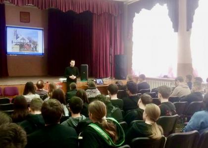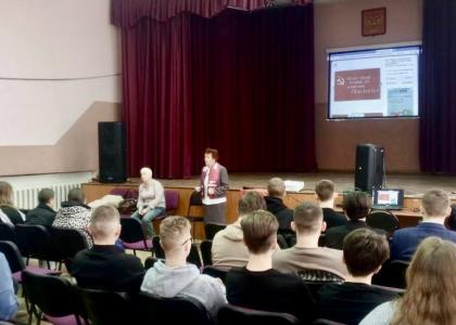 Патриотический урок для студентов Ефремовского химико-технологического техникума (ГПОУ ТО «ЕХТТ») провели секретарь Тульского обкома КПРФ М.С. Федоров, первый секретарь Ефремовского ГК КПРФ Л.А. Стаброва, председатель общественной организации «Дети войны» г. Ефремова В.И. Плотникова и член Бюро обкома КПРФ М.М. Тесаков. Урок был посвящен 80-летию Победы в Великой Отечественной войне.
