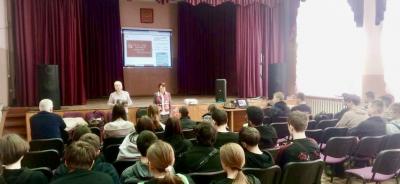 Патриотический урок для студентов Ефремовского химико-технологического техникума (ГПОУ ТО «ЕХТТ») провели секретарь Тульского обкома КПРФ М.С. Федоров, первый секретарь Ефремовского ГК КПРФ Л.А. Стаброва, председатель общественной организации «Дети войны» г. Ефремова В.И. Плотникова и член Бюро обкома КПРФ М.М. Тесаков. Урок был посвящен 80-летию Победы в Великой Отечественной войне.