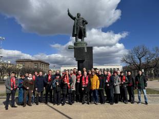 День начался с обзорной экскурсии по городу. Затем участники возложили цветы к памятнику «В.И. Ленин на броневике» у Финляндского вокзала — месту, откуда началась новая история страны. После — посещение Музея политической истории.