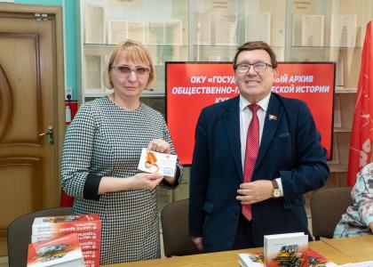 После презентации книги Н.Н. Иванов вручил директору архива Евгению Евгеньевичу Старкову медаль ЦК КПРФ «80 лет Победы». А каждому участнику презентации - свою книгу в подарок