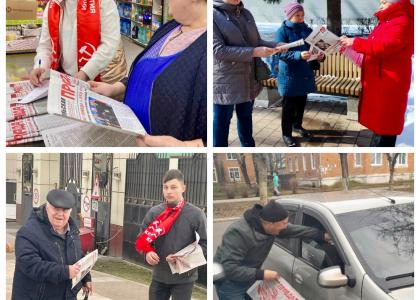 Сторонники партии и агитаторы на проходных тульских предприятий, оживленных улицах Тулы и районных центров активно раздают газеты и листовки с призывом поддержать инициативы КПРФ.