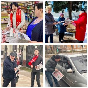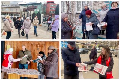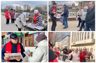 Сторонники партии и агитаторы на проходных тульских предприятий, оживленных улицах Тулы и районных центров активно раздают газеты и листовки с призывом поддержать инициативы КПРФ.