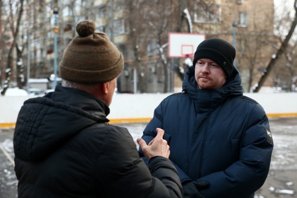 Встреча прошла на спортивной площадке по адресу ул. Симоновский вал, д.7.к.1, в народе – знакомой всем “коробке”, на которой местные жители обычно занимаются физическим развитием дети и подростки. Её, возможно, тоже постигнет незавидная участь – она может быть снесена ради проезда к новому многоэтажному жилому дому, строительство которого планируют городские власти совместно с застройщиками. Такая же судьба грозит и находящейся напротив детской площадке, как и двухэтажному зданию рядом.