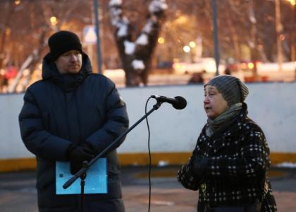 Перед собравшимися выступает Надежда, живущая рядом уже более 30 лет. На предполагаемой к сносу детской площадке она вырастила двух детей. После строительства нового дома маленький посвет солнца во дворе между домами будет закрыт. Надежда обращает внимание и на очереди в магазинах (последних в центральной части Москвы уже долгие годы не хватает), отсутствие травмпунктов, ближайший из которых находится в Печатниках. Она предлагает городской власти подумать “в этом ключе” – ключе развития доступности и числа социальных учреждений района.