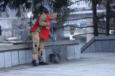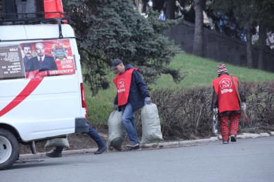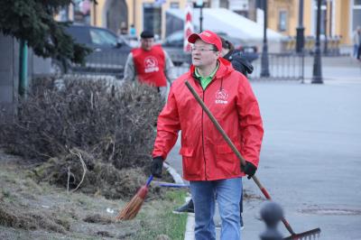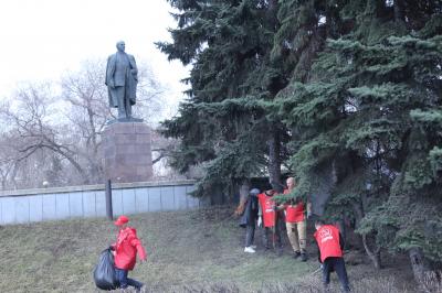 В Омске актив регионального отделения КПРФ под руководством второго секретаря Омского обкома КПРФ Ивана Федина в честь Дня космонавтики провел субботник в сквере «Ленинская горка».
