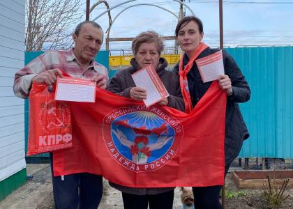 В рамках проведения «Народного референдума» активно работает Энгельсское отделение ВЖС «Надежда России». Активистки Женского Союза проводят агитационные мероприятия, распространяют информацию по актуальным вопросам, которые отражены в бюллетенях для голосования. Также они призывают граждан активнее участвовать в «Народном референдуме» КПРФ.