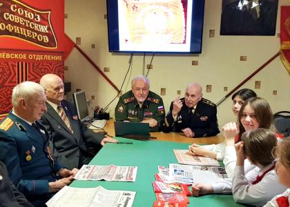 Организатор пионерского движения, жена военнослужащего и дочь офицера И.В. Васильева поблагодарила советских офицеров за проведенную патриотическую встречу и проинформировала их о работе пионерского отряда при первичном отделении КПРФ микрорайона Юбилейный имени И.И. Аксенова. Очередная встреча советских офицеров с молодежью состоится к 80-летию Великой Победы.