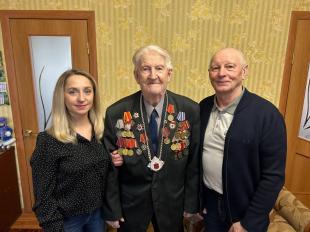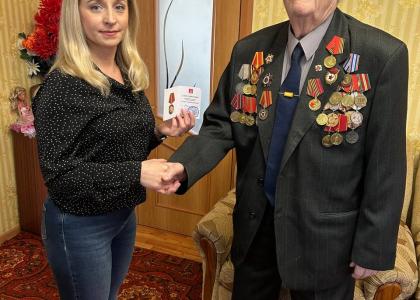 Депутаты-коммунисты вручили А.И. Тимофееву юбилейную медаль ЦК КПРФ «В ознаменование 80-летия Победы», от имени обкома и райкома партии товарищи пожелали ветерану здоровья, долголетия, хорошего настроения и вручили подарки.