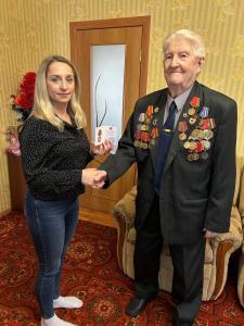 Депутаты-коммунисты вручили А.И. Тимофееву юбилейную медаль ЦК КПРФ «В ознаменование 80-летия Победы», от имени обкома и райкома партии товарищи пожелали ветерану здоровья, долголетия, хорошего настроения и вручили подарки.