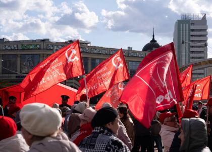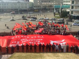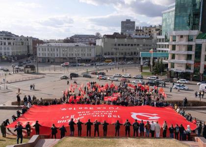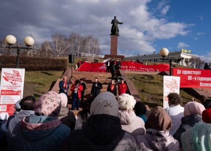 14 апреля в Казани состоялся торжественный митинг в рамках Всероссийской антифашистской марша-эстафеты «Наша Великая Победа». В ходе мероприятия коммунисты КПРФ завернули увеличенную копию Знамени Победы.