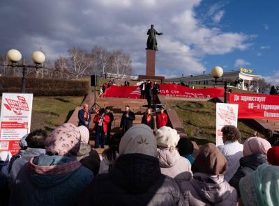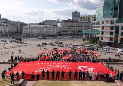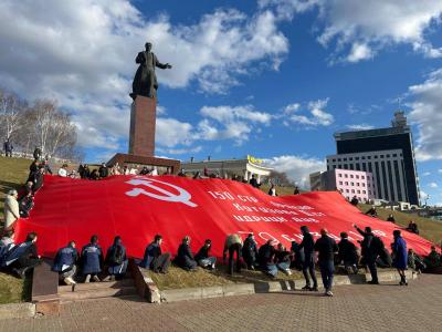 14 апреля в Казани состоялся торжественный митинг в рамках Всероссийской антифашистской марша-эстафеты «Наша Великая Победа». В ходе мероприятия коммунисты КПРФ завернули увеличенную копию Знамени Победы.