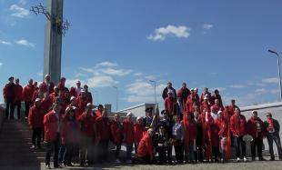 Торжественное мероприятие началось в Энгельсе – городе-спутнике областного центра, откуда автоколонна КПРФ с копией Знамени Победы, которую привезли коммунисты Оренбургской области, двинулась по городским улицам и площадям. Расцвеченная кумачом флагов, под звуки патриотических песен КПРФ, сопровождаемая присоединившимися автомобилями саратовских и энгельсских коммунистов, автоколонна КПРФ вскоре прибыла к главному месту проведения торжества – парку Победы на Соколовой горе г. Саратова. Мемориальный комплекс «Журавли» – один из символов Саратова, памятник саратовцам, погибшим во время Великой Отечественной войны 1941—1945 годов.