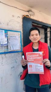 Комсомольцы республиканской столицы вновь вышли на улицы Кызыла. Их цель – распространение информационного бюллетеня «Республика», который раскрывает ключевые аспекты работы КПРФ в Республике Тыва, а также доносит информацию о ключевых моментах, связанных с проходящим в стране Народным референдумом КПРФ.