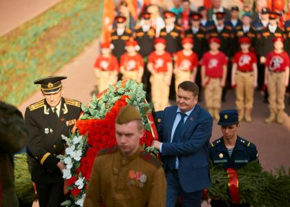 Также к Вечному огню возложили цветы коммунисты, кадеты, юнармейцы и военнослужащие Нижегородской области. После этого начался торжественный митинг, на котором выступили почётные гости и детские творческие коллективы из региона.