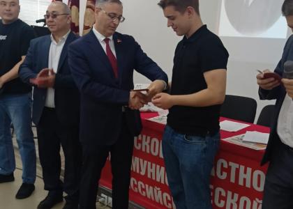 Перед началом мероприятия первый секретарь Оренбургского областного Комитета КПРФ Максим Амелин вручил партийные билеты и напутствовал вступивших в партию товарищей. По традиции поздравили коммунистов, которые недавно отметили свой День рождения.