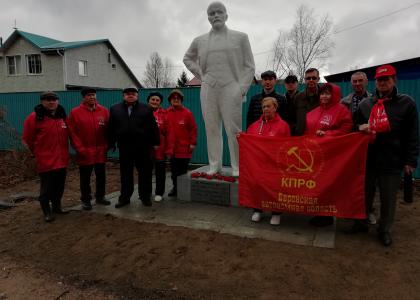 Почтив память Владимира Ильича возложением цветов к памятнику, коммунисты, комсомольцы, сторонники партии прибыли в поселок Мясокомбинат. Там во дворе жилого дома несколько лет назад один из членов регионального отделения КПРФ в ЕАО Владимир Неумывака установил бюст Ленина, который руководители одноименного предприятия хотели демонтировать, отправив на переработку. «Спасенного» Ильича теперь чтит и охраняет практически весь поселок от мала до велика.