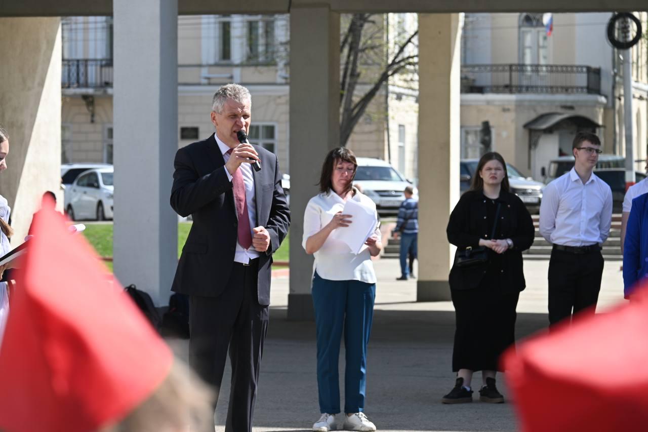 Сегодня в день празднования 155-летия со Дня рождения Владимира Ильича Ленина, великого вождя и революционера, создателя Российской социал-демократической рабочей партии большевиков и советского государства Ульяновский областной комитет организовал возложение цветов на его памятник напротив здания управления.