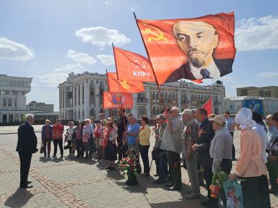 Главная акция состоялась у памятника Ленину в областном центре. Сюда пришли ветераны Коммунистической партии и молодые коммунисты, комсомольцы, сторонники, активисты союзных лево-патриотических организаций.