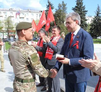 Немало коммунистов и комсомольцев участвует в боевых действиях, находясь на передовых рубежах. Среди демобилизованных участников СВО также немало товарищей, поддерживающих Программу КПРФ. Только в марте ряды партии пополнили 14 раненных военнослужащих. Красную символику СССР и нашей партии они одели в бою и с честью выполнив свой долг пришли в Республиканский Комитет партии, чтобы оформить членство в ней. Сегодня после возложения цветов к подножию памятника вождю 10 участникам СВО были торжественно вручены партийные билеты.