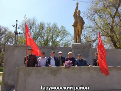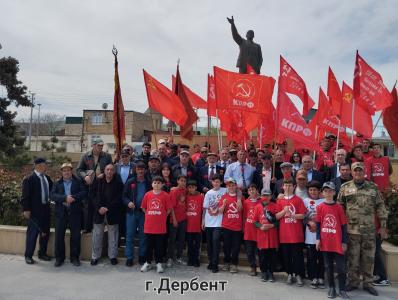 Так, в городах Буйнакск, Каспийск, Кизилюрт, Дагестанские Огни и Дербент, в Буйнакском, Кизилюртовском, Карабудахкентском, Тарумовском районах состоялись торжественные возложения цветов к памятникам В.И. Ленину. Акции были организованы Комитетами местных отделений КПРФ. В мероприятиях приняли участие члены горкомов и райкомов местных отделений КПРФ, дети войны и сторонники коммунистической партии, студенты и школьники.