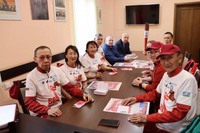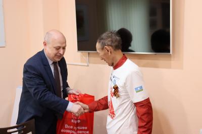 Второй секретарь областного комитета партии, депутат-коммунист Олег Дмитриев и председатель Волгоградского регионального отделения «Дети войны» Андрей Шевченко встретили гостей из Республики Саха (Якутия), и обменялись памятными подарками.
