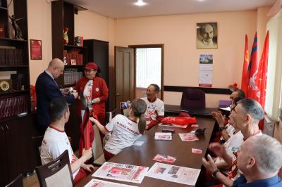 Гостям провели экскурсию по Сталинградскому обкому, коммунисты рассказали о взаимодействии с общественными организациями и сторонниками КПРФ Волгоградской области, которых насчитывается более 10, и все они тесно сотрудничают и активно участвуют в мемориально-патриотических мероприятиях, а также работают на Народном референдуме КПРФ.