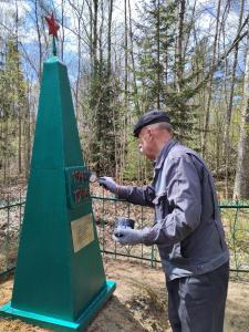 Здесь в июле 1941 года в жестоких боях погибли советские воины, на месте гибели которых был установлен памятник., деревня уже длительное время нежилая, дорога к ней превратилась в болото. Участники акции в преддверие 80-летия Победы привели в порядок территорию у памятника, покрасили ограду и сам памятник, возложили цветы. Как уточнили в Солецком РК КПРФ, в этом месте ранее была братская могила воинов, но несколько лет тому назад солдаты были перезахоронены в братскую могилу в деревне Дорогостицы. А сам памятник остался, но требовал обновления.