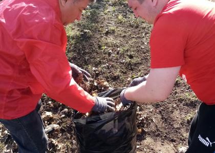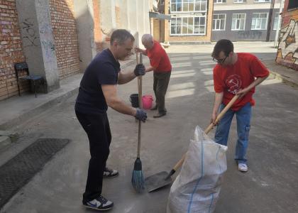 Взяв в руки грабли, метелки, они под патриотические песни из переносных колонок очистили прилегающую территорию от сухих веток, опавшей листвы и мусора.