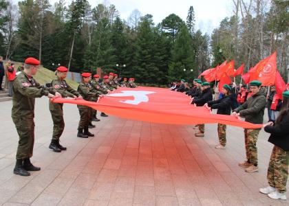 А в полдень перед мемориальным комплексом в Лагерном саду открылся региональный этап проекта «Знамя нашей Победы». Митинг открыл и вёл секретарь Томского обкома А.К. Киселев. С приветственной речью к собравшимся обратился Первый секретарь Томского обкома КПРФ А.Г. Петров. Он напомнил о вкладе томичей в нашу Великую Победу, о доблести сибирских дивизий во время Великой Отечественной войны, а также о ратном труде земляков на СВО сегодня. После этого Первый секретарь обкома дал команду, по которой юнармейцы томских школ развернули увеличенную копию Знамени Победы. Собравшиеся почтили память погибших воинов минутой молчания.