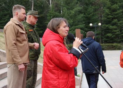 На митинге выступили томичи – участник операции советских войск в Афганистане, кавалер ордена Красной Звезды А.А. Шарков, ветеран СВО А.С. Губин, а также куратор проекта из Москвы А.А. Ефремова, заведующая сектором отдела организационно-партийной работы ЦК КПРФ. После неё взял слово гость из Бурятии Б.Ю. Базаров, который передал привет томским коммунистам от своих земляков. Торжественная церемония завершилась возложением цветов к вечному огню и общей фотографией на память.