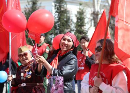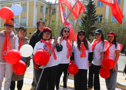 Сегодня праздник труда был отмечен торжественным парадом в столице региона – Кызыле. Более 3000 участников различных трудовых коллективов с последовательнои транспарантами, лозунгами и флагами вышли на главный зал, поддерживая вековую традицию Первомая.