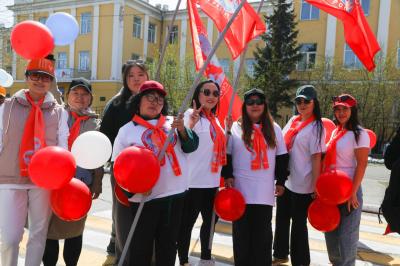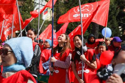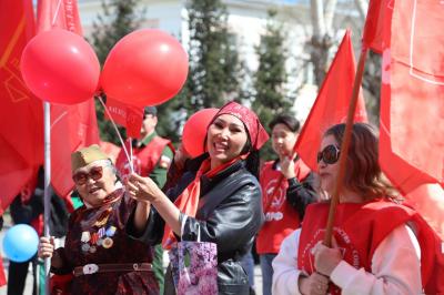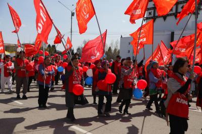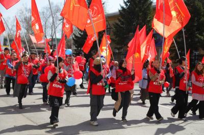 Сегодня праздник труда был отмечен торжественным парадом в столице региона – Кызыле. Более 3000 участников различных трудовых коллективов с последовательнои транспарантами, лозунгами и флагами вышли на главный зал, поддерживая вековую традицию Первомая.