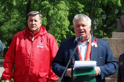 Первый секретарь Воронежского обкома КПРФ, руководитель фракции КПРФ областной Думы Андрей Рогатнев поздравил собравшихся с Первомаем, напомнил об истории праздника, омытого кровью борцов за права и достоинство рабочего человека, против всевластия капитала. Эти жертвы были не напрасными: борьба пролетариата крепла с каждым годом и, поставленная на научную основу благодаря теории Маркса и Ленина, привела к победе Великой Октябрьской социалистической революции в нашей стране. 8-часовой рабочий день, достойная зарплата, охрана труда, оплачиваемые отпуска, пенсии по старости – всё это появилось у трудящихся страны Советов и стало образцом для всех государств.