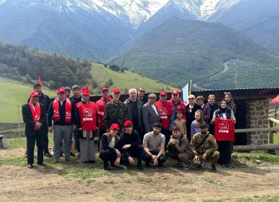В восхождении на Маьт Лоам были задействованы все участники мероприятия, в числе которых были старейший коммунист ИРО КПРФ Бериханов Ахмед Джамалдинович и октябренок Берд Аушев.