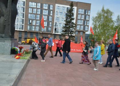 Коммунисты, комсомольцы и пионеры Барнаула, сторонники партии приняли участие в торжественном развертывании увеличенной копии Знамени Победы на Мемориале Славы краевого центра.